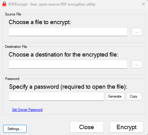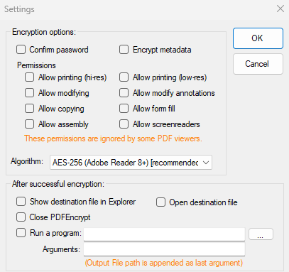 Puoi anche far aprire il documento automaticamente a Pdf-encrypt una volta creato in modo da poter testare subito la corretta impostazione della password. Metti quindi la spunta in Open destination file.